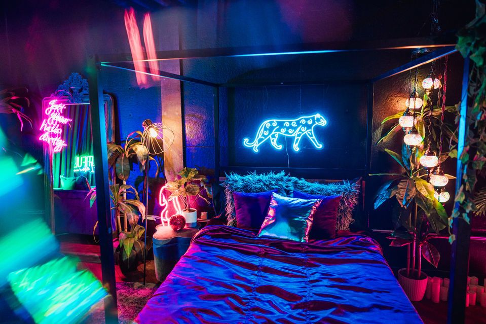 LIT BY OVER 15 NEON LIGHTS- THIS SIDE OF THE STUDIO IS FOR THE FUN, FUNKY, COLOR LOVIN' BABES. NOT A SINGLE WINDOW IS ON THIS SIDE, SO ALLLL YOUR PHOTOS ARE FULLY LIT BY NEON